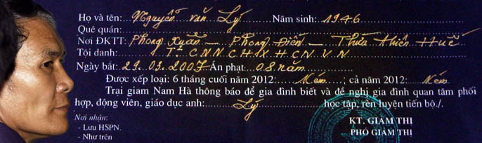 Tuần trước đọc trên mạng, thấy anh còn ở trại giam Nam Hà, tôi ngạc nhiên quá đỗi, tưởng đâu anh ra tù lâu rồi chớ! Vì từ cái dạo họ bụm miệng anh tới nay, chẳng nhớ mấy năm, nhưng cơ hồ lâu lắc lâu đế, ai có ngờ anh vẫn ở trong nớ. Nay ngạc nhiên hơn với bút phê: Kém, và họ cần thân nhân, gia đình “động viên, giáo dục anh Lý”.
