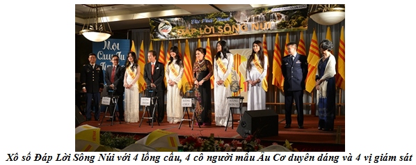 Tiết mục mà hầu hết các quan khách trong hội trường đang chờ đợi là tiết mục xổ số. Trong khi ca sĩ Anh Trinh đang hát bài “Không ai ngăn được lời ca”, BTC đã bắt đầu cho đem lên 4 chiếc lồng cầu với các tấm bảng ghi: “hàng ngàn”, “hàng trăm”, “hàng chục” và “hàng đơn vị” để chuẩn bị cho tiết mục xổ số. Ngay sau khi bài hát chấm dứt, hai quân nhân người Mỹ gốc Việt là Thiếu Tá Trần Quốc Anh và Phạm Quốc Hải đã lần lượt đưa 4 cô người mẫu lên đứng sát 4 lồng cầu. Sau đó, các MC đã mời 4 vị giám sát là LS Phan Quốc Cường, Bà Kim Châu, chủ nhân Tiệm Vàng Kim Châu, BS Vũ Ban, Giám Đốc Đài VAN-TV, và phu nhân của BS Trần Văn Thuần lên để chứng kiến tiến trình quay lồng cầu. Dưới sự chứng giám của hơn 700 quan khách tham dự, 5 lô an ủi, 5 lô may mắn, 1 lô Thần Tài và 1 lô Độc Đắc đã được xổ tại chỗ với kết quả được phóng lên 2 màn ảnh lớn hai bên. Dưới đây là kết quả của cuộc xổ số: