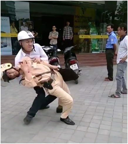 Xôn xao clip, đánh Thiếu Tá Công An Giao Thông.