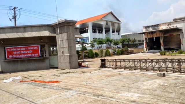 Tuy vậy khi chạy một vòng khu công nghiệp để xem thử, dấu hiệu của sự bất ổn của khu công nghiệp là các băng-rôn giới thiệu mình không phải của Trung Quốc đã xuất hiện, giăng khắp nơi. Có nơi đã bị đánh sập cửa, dù có băng-rôn “Việt Nam muôn năm”. Trừ một vài công ty của Nhật còn làm việc, còn lại dường như đã tạm ngưng hoạt động.