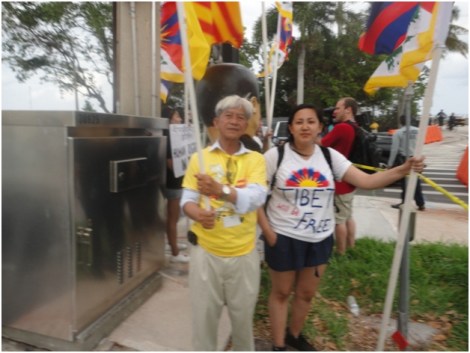 Mới đây Atlanta, do BCH Cộng Đồng Việt Nam ủy nhiệm, đã tổ chức quy tụ hơn 50 đồng hương, trên một chuyến xe bus, tiến về West Palm Beach, Florida. Nơi TT Donald Trump và CT Tập Cận Bình, họp thượng đỉnh, chuyến xe khởi hành, từ 7:30 pm, thứ Tư ngày 5 / 4 / 2017 đến 7:30 am ngày hôm sau mới đến nơi, từ trưa thứ Tư, tại Atlanta mưa to, gió lớn, giống như một cơn giông bảo sắp ập tới, đang lo ngại hãng xe bus hủy hiệp đồng, may sao điều xấu không xảy ra. Chúng tôi xuống xe ngã tư Southern cắt góc đường Flagler Dr, tập họp ở công viên nho nhỏ, lưng dựa bờ biển. Mới sáng sớm đã có nhiều đài truyền hình: CBS, NSBC và đài truyền hình Nhật Bản tới phỏng vấn Hùng Anh, trưởng đoàn Atlanta và phỏng vấn các bạn trẻ, chúng tôi vừa nghỉ ngơi, vừa chờ các đoàn từ tiểu bang khác, tới 9:30 am (6/4/2017) chúng tôi rẽ trái đường Southern, băng qua cầu xếp, khoảng nửa cây số, nơi đây được cho là điểm họp thượng đỉnh, chúng tôi gặp khoảng một trăm người Pháp Luân Công, gồm nhiều sắc dân, có cả người Việt, nam nữ đều mặc đồng phục vàng, họ đang tập thiền và cùng một mục đích biểu tình phản đối Tập Cận Bình, Trung Cộng.