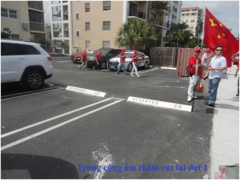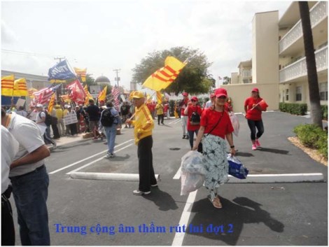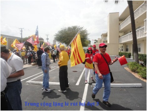 Đoàn Atlanta bọc sau lưng đoàn Trung Cộng, mục đích ép họ xuống lòng đường, để Cảnh Sát đuổi, cờ VNCH dương cao, cùng khẩu hiệu: