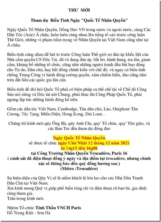 Tham Dự Biểu Tình Ngày Quốc Tế Nhân Quyền November 26, 2021 · by HonNuoc · Bookmark the permalink. · Related